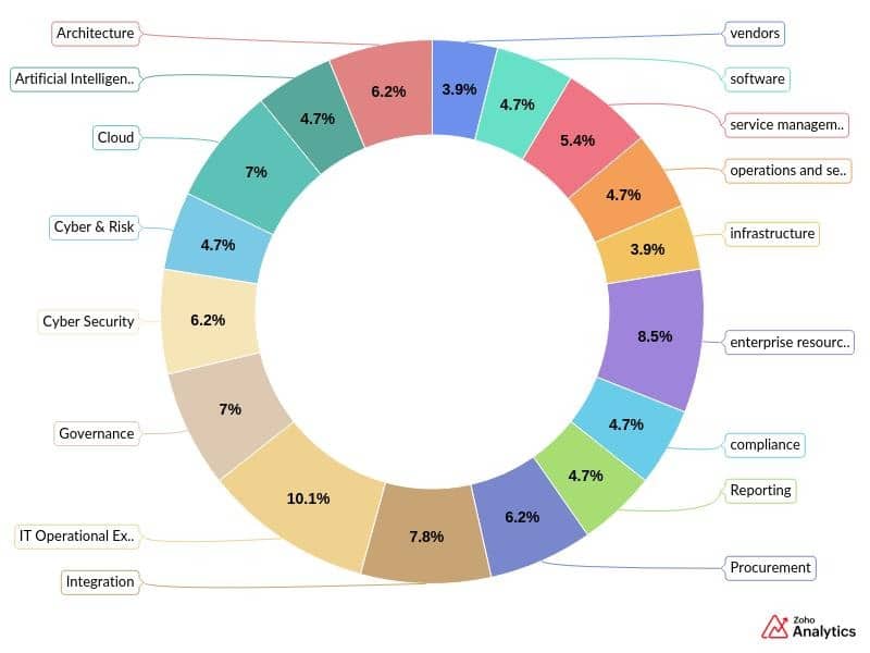 Key areas of concern include IT operational excellence for financial controls, integration, and artificial intelligence. Importantly, strategic value realisation continues as a prominent trend, suggesting a sustained client need to demonstrate tangible business outcomes from their ICT investments to the board.